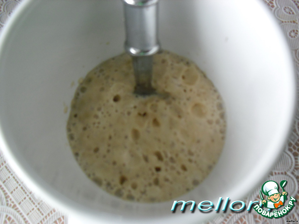 Примерно в 50 мл воды и 1 чайной ложке сахара развести дрожжи. Дать подняться.