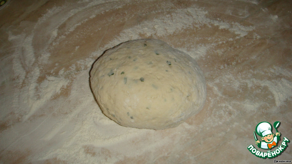Выложить тесто на посыпанный мукой стол и хорошенько вымесить. После этого оставить на 1 час, пока тесто не увеличится вдвое.