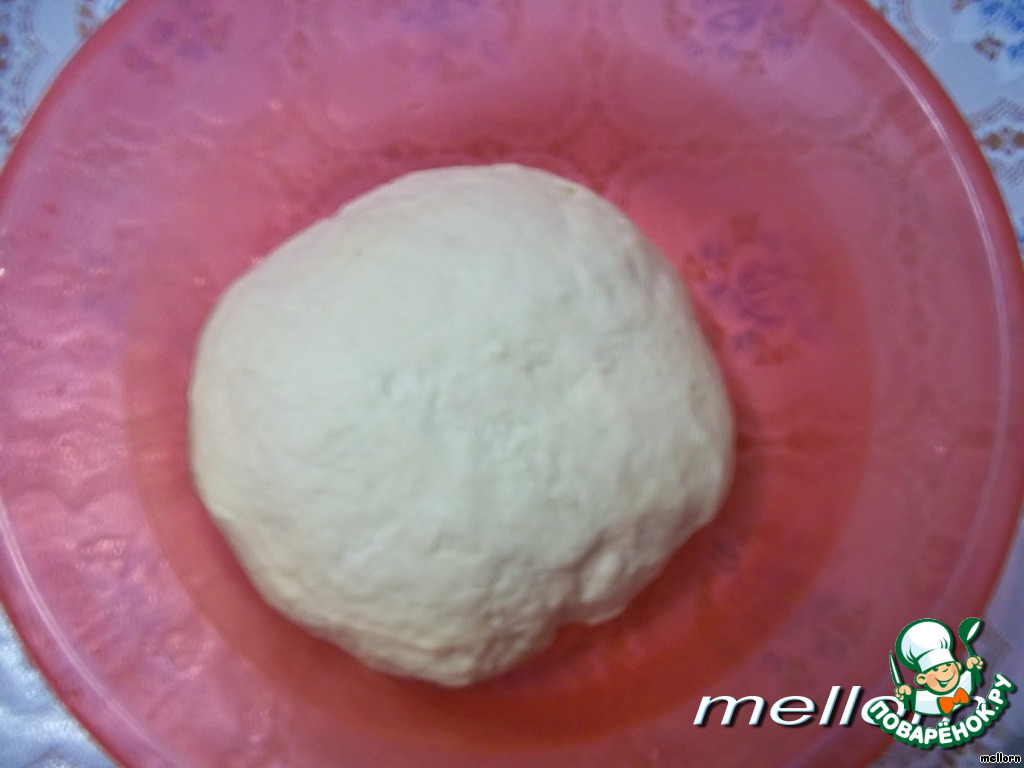 Замесить тесто из сметаны, соли, дрожжей, яиц, молока и муки.