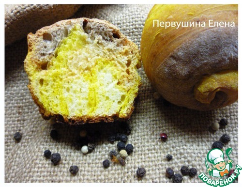 | Этот хлеб - участник фото-забега №6. Многие девочки просили рецепт данной выпечки, так что предлагаю вашему вниманию яркий и вкусный хлеб! Идеальная несладкая выпечка к празднику. Хлебец с приятным вкусом паприки, тонким запахом куркумы и шоколадным послевкусием. |
