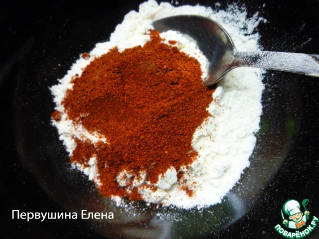 В чашке со столовой ложкой муки смешиваем паприку и