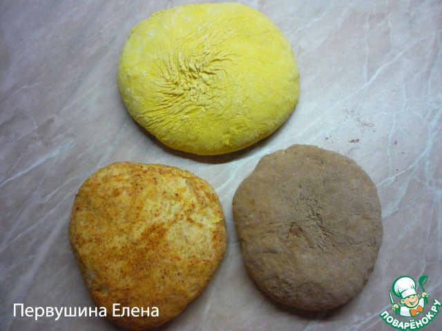 Предвидя вполне логичные вопросы, отвечаю: смешивается все равномерно, без пятен. Можно замесить отдельно, но это очень долго, да и вкус специй тогда будет ярче, что нам совершенно не нужно. А при таком раскладе процесс приготовления теста проходит быстрее, цвет красивее, а вкус тоньше.
