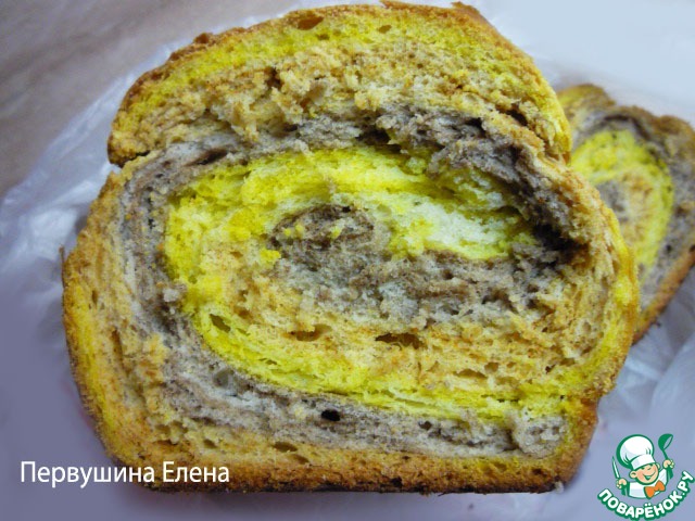 Смазываем форму маслом (если требуется) и определяем туда наш хлебный рулет. Отправляем хлеб в разогретую до 170-180*С духовку на 30-40 минут. Цвета с куркумой и какао в процессе выпекания проявятся ярче раза в три, так что нужно учитывать это при добавлении в тесто этих ингредиентов.
