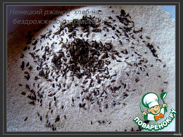 Просеиваем в миску ржаную и пшеничную муку, добавляем семена тмина соль и сахар и ставим в микроволновку на 15 сек при 900 вт, сухие ингредиенты прогреваются.