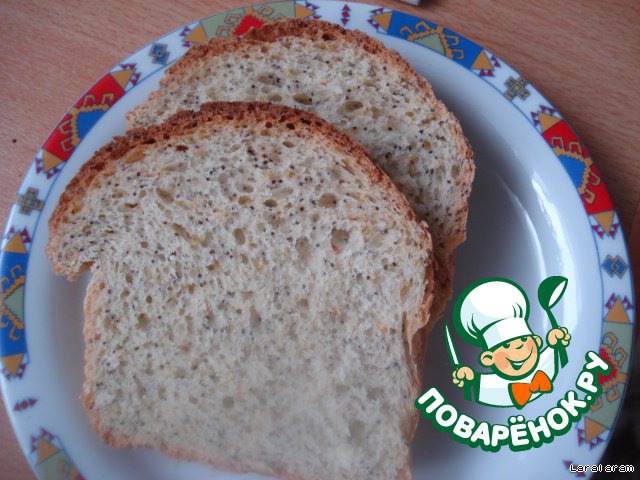 | Рецепт рассчитан на хлебопечку, но я как всегда пекла "дедовским" способом. Хлебушек получился "тостовый": лeгкий и воздушный, идеально подходит к завтраку - с маслом, вареньем, мeдом, сыром или творогом… Очень понравился. Аромат обалденный! Быстро и легко подходит, долго не черствеет! Попробуйте - не пожалеете! кто никогда хлеб не пeк - этот рецепт как раз для того, чтобы начать! |