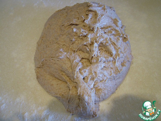 Добавляем к опаре 250 г. цельной муки и смешиваем в мягкое некрутое тесто. Оставляем для аутолиза на 30 минут. Если у вас слабая закваска, можно добавить щепотку дрожжей (я не добавляла)