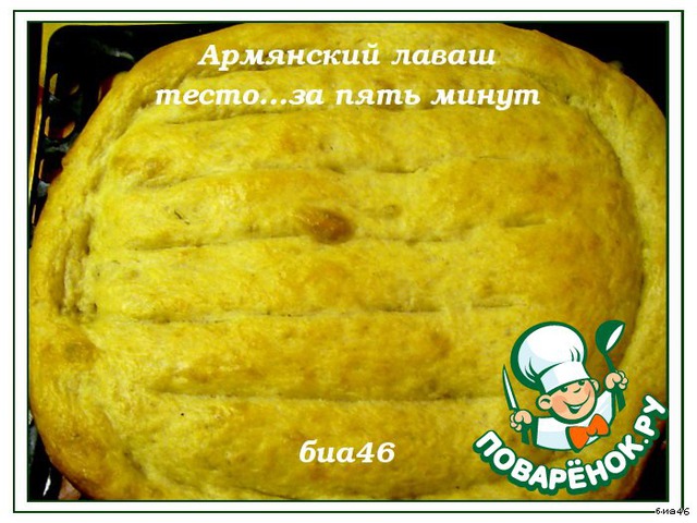 | Осталась половина теста от "Американского бутербродного", захотелось из этого теста (пятидневное созревание) испечь лаваш, получилось так вкусно, что я теперь решила печь лавашики сама, магазинный и рядом не стоял!!! |