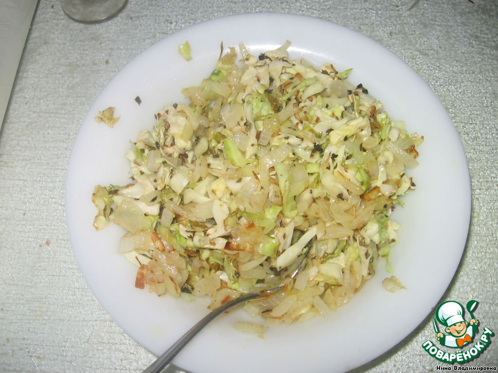 | Ну, очень хотелось пирожков с капустой, а делать надо было хлеб. Вот и получился этот гибрид хлеба с пирожками. Его и хлебом сложно назвать, скорее, это пирог с капустой. |