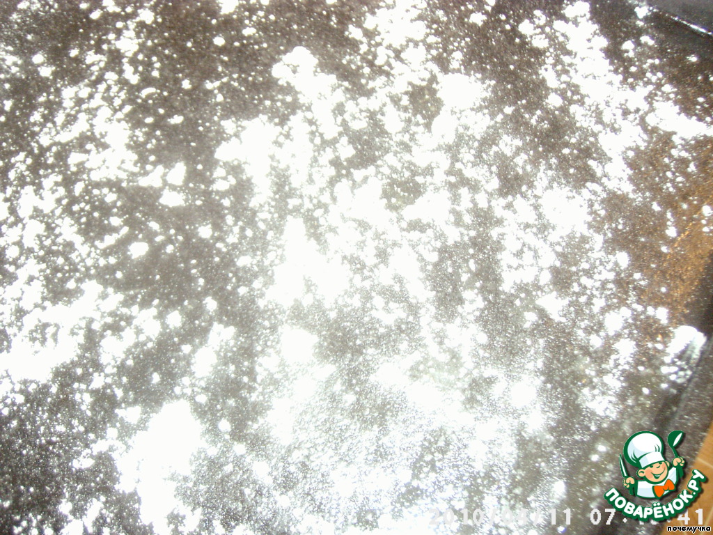 Выложим его на посыпанную мукой поверхность и месим еще 10 минут, пока тесто не станет гладким и эластичным и не будет прилипать к пальцам.