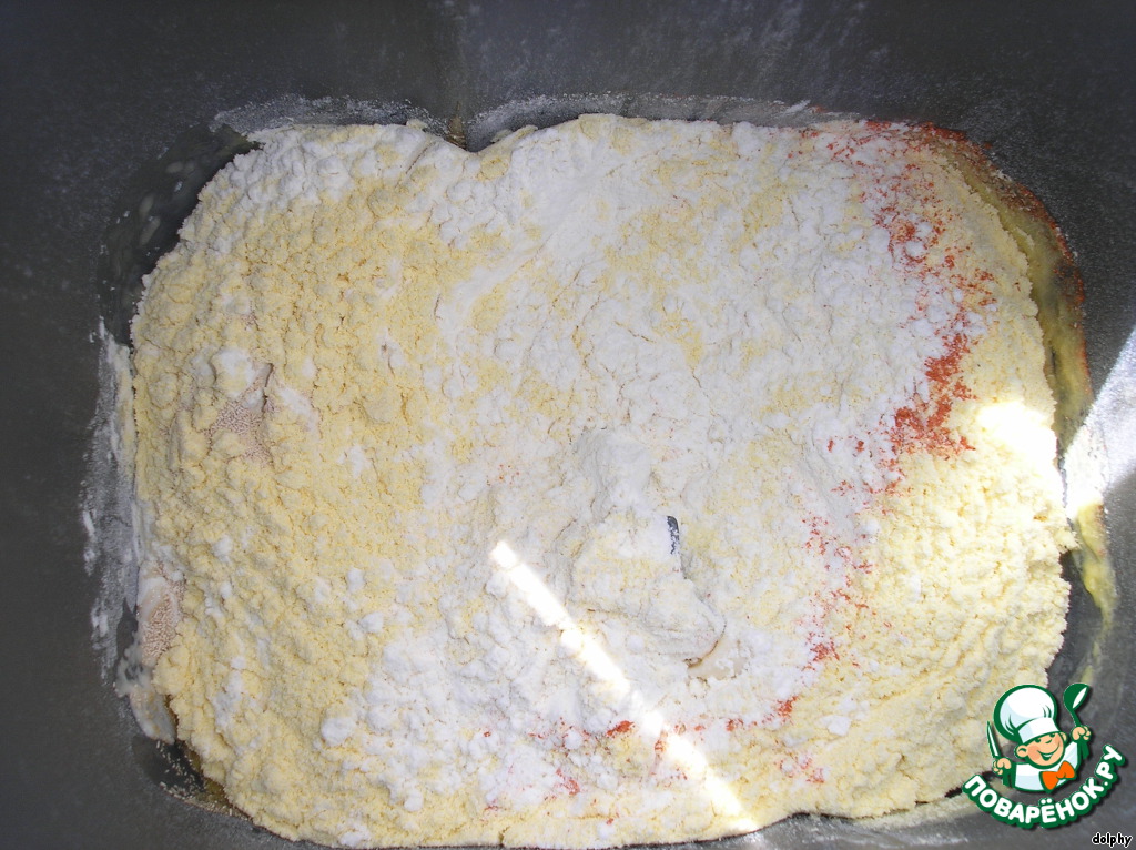Затем просеиваем муку, добавляем перец и дрожжи.