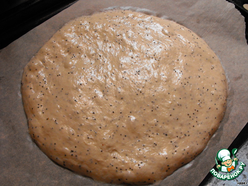 Противень застелить бумагой для выпечки, сформировать руками лепешку.