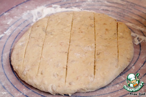 Из теста сформировать лепешку, сделать надрезы ножом на расстоянии 3-4 см.