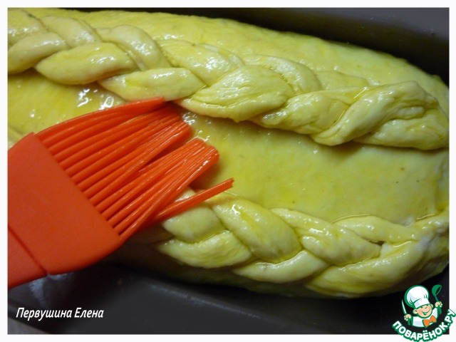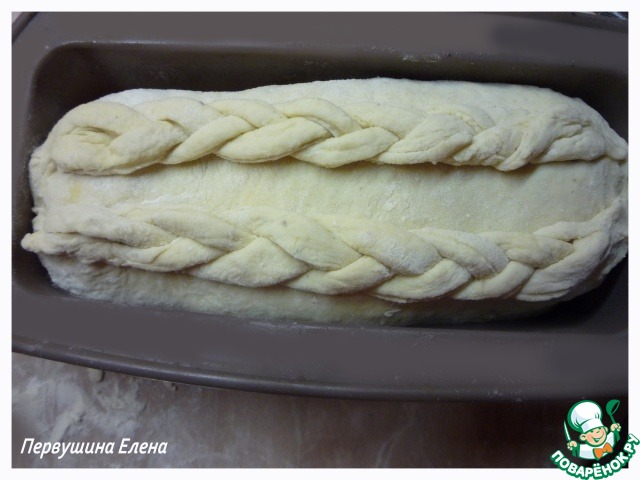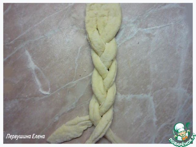 Делим отложенное тесто пополам и заплетаем 2 косы.