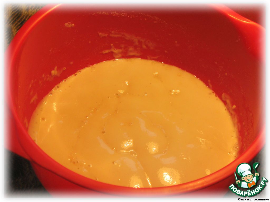 В теплую воду кладем дрожжи, сахар и 4-5 ст. ложек муки, перемешиваем и минут 15 даем постоять до появления "шапочки"