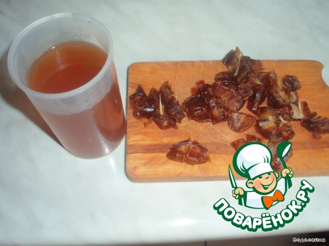 Завариваем чай покрепче (и даем ему немного остыть) и режем финики на средние кусочки. При замесе теста они еще измельчатся.