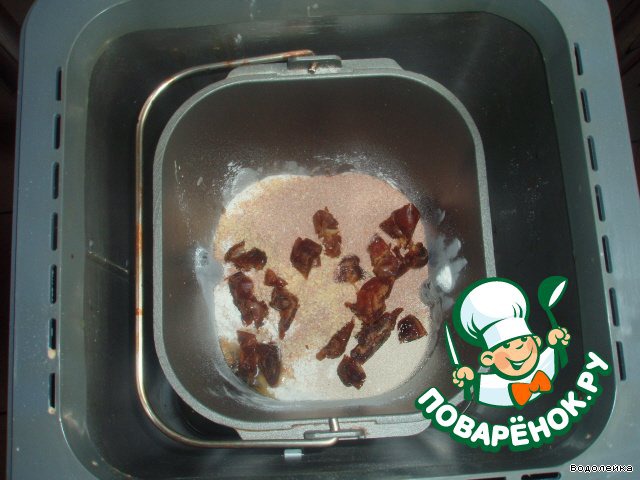 Немного фиников оставьте для посыпки сверху. Ставим режим - французкий хлеб (4 ч. в печке LG), корочка средняя. Рассчитано на буханку весом 450 гр.