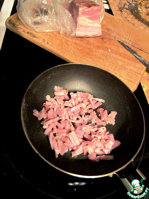 К теплому гороховому пюре добавляем яйцо, вливаем растительное масло, вытопившийся от грудинки жир, воду, сушеный лук, базилик, чеснок и соль. Размешиваем. Всыпаем цельнозерновую муку, дрожжи, и просеиваем через сито пшеничную муку. Если у вас есть хлебопекарный улучшитель Панифреш или Панифарин, то добавьте одну столовую ложку. Начинаем замешивать тесто. Добавляем грудинку и продолжаем месить. Тесто получается довольно густое.