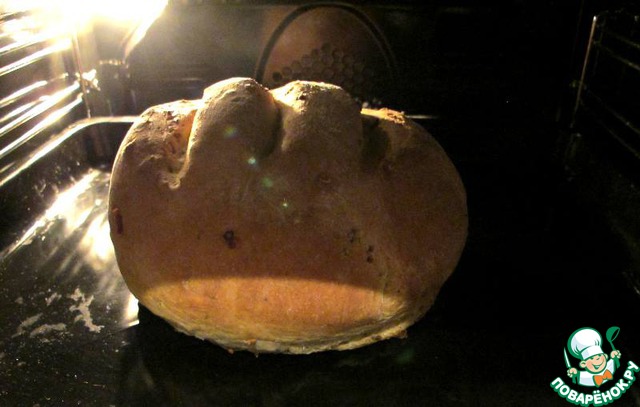 Включаем духовку на 50-70 градусов и ставим наш каравай на 30 минут. Затем включаем духовку на 180-200 градусов и выпекаем до готовности около 30-40 минут. Невероятный аромат из духовки подскажет вам, что хлеб готов.