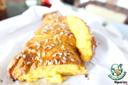 Нагреть духовку до 200 С, смазать косичку желтком с молоком и посыпать семечками.
