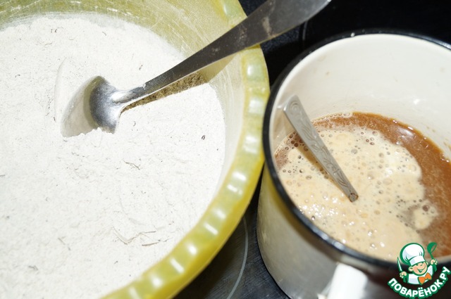 Воду подогрейте слегка, растворите в ней патоку (мед, коричневый сахар). Добавьте дрожжи, пусть слегка подружатся. Потом добавьте сюда же ложку растительного масла.