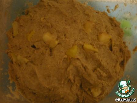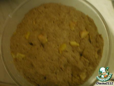 Тем временем в сковороде растопить сливочное масло и добавить нарезанные кусочками яблоки. Слегка прогреть. Не до мягкости! Иначе в хлебе вы их не увидите. Снимаем с огня и даём остыть до тёплой темпиратуры.