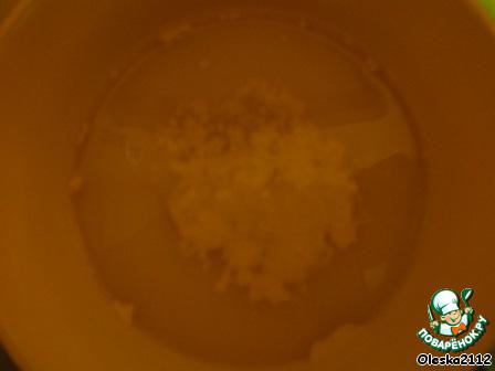 В 100 мл тёплой воды добавляем сахар и дрожжи. Даём постоять 10-15 минут до полного растворения дрожжей.