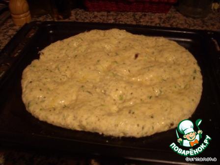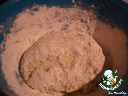 Кладем все ингредиенты в миску: просеиваем муку (где-то грамм 400), дрожжи, трем туда свежий очищенный кабачок на крупной терке, добавляем яйца, размягченное сливочное масло,сыры, солим и добавляем специи/зелень. Я клала всего понемножку: петрушку, укроп, зеленый лук, даже немного Вегеты насыпала. Можно добавить чеснока. А вообще, по вкусу - кому чего больше нравится. Замешиваем тесто, подсыпая муку до нужной густоты. Оно должно получится как на хлеб.