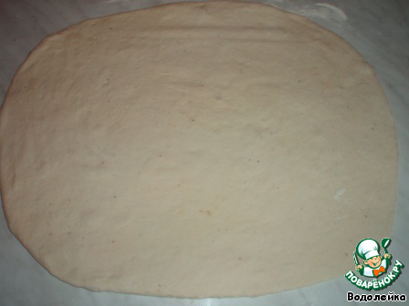 Раскатываем его в форме прямоугольника, но не очень тонко, чтобы в дальнейшем не порвалось.