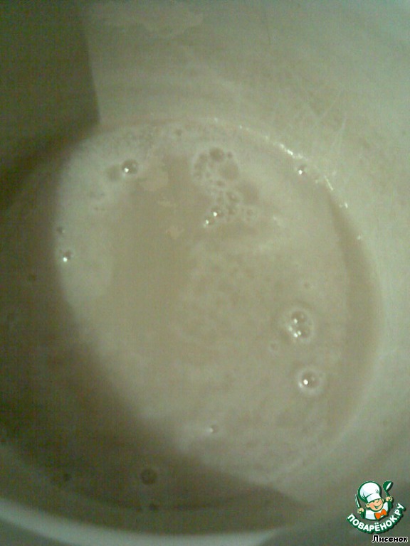 Из 100 мл воды, дрожжей и сахара поставить опару.