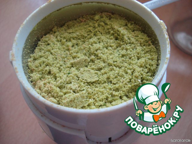 Перво-наперво купите несолёные фисташки, 25 г смелите в порошок, а 25 г слегка обжарьте на сухой сковородке - но лишь слегка, они должны остаться зелёными.