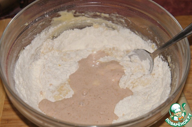 Затем тщательно вымесить. Тесто получается довольно мягкое и липкое,