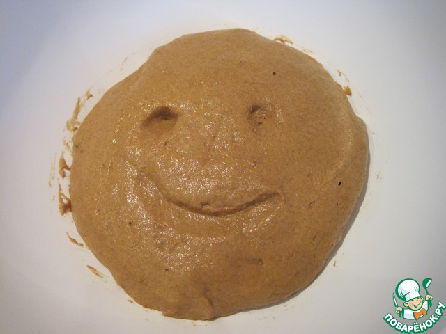 Тесто для замешивания не удобное-липкое, вязкое. Я специально сделала рисунок на тесте, что б можно было понять, насколько оно поднялось. Тесто с ржаной мукой требует меньше времени на расстойку. Достаточно 30 минут первичной расстойки и около часа для расстойки в форме для выпечки. И так, замешанное тесто накроем и оставим в тёплом месте на 30-ть минут.