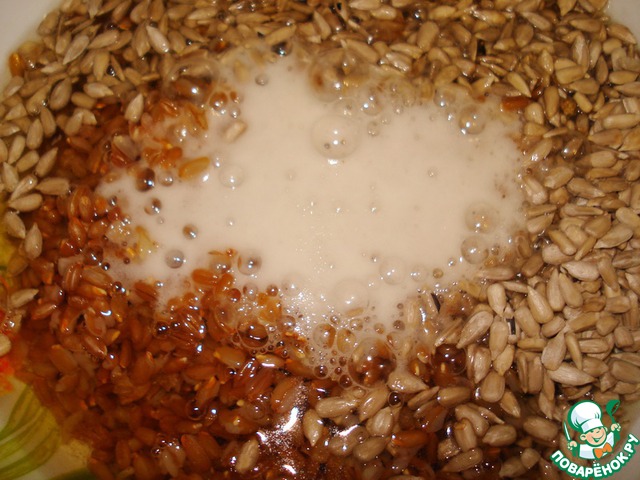 Затем смешать с семенами подсолнечника и залить пивом, оставить