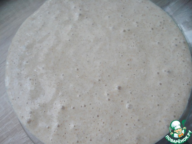 Мы будем использовать ржаную закваску. Я делаю из книги "Bread Bakers Аpprentice" Питера Райнхарта. Она у меня зреет 5 дней. Moя закваска всегда имеет влажность 100%, т. е. соотношение муки и воды 1:1 по весу, это сильно упрощает арифметику. Вы можете использовать любую вашу закваску. Рецепт закваски в Дневниках http://www.povarenok .ru/blog/show/25709/