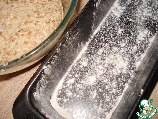 Затем тесто обмять, форму смазать маслом и присыпать мукой.