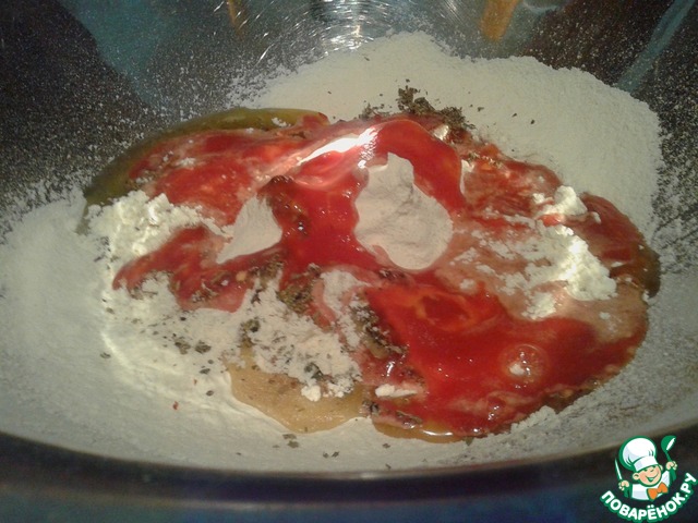 Замесить тесто, накрыть и поставить в духовку при 60 град. на 30-40 минут.