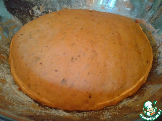 После того как тесто подошло, еще раз вымесить его на столе, присыпанном мукой.