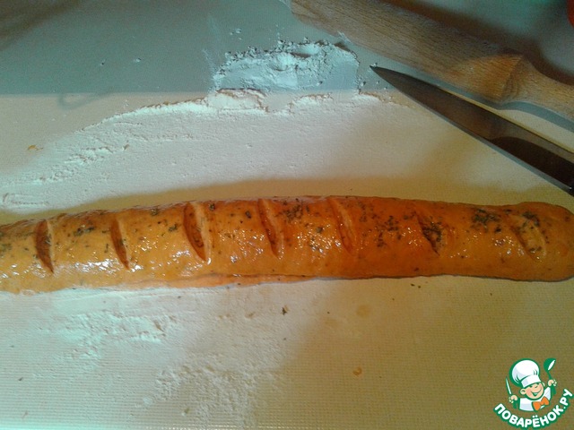 | Ароматный, вкусный, насыщенного цвета багет с хрустящей корочкой... м-м-м... Пробуем! |
