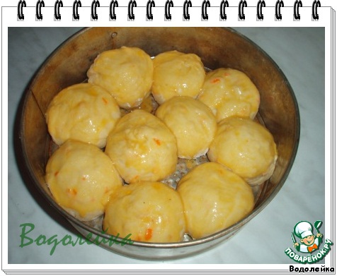 Для этого отрываем от теста небольшие кусочки, скатываем в шарики. Готовое изделие выкладываем в форму (смазать маслом).