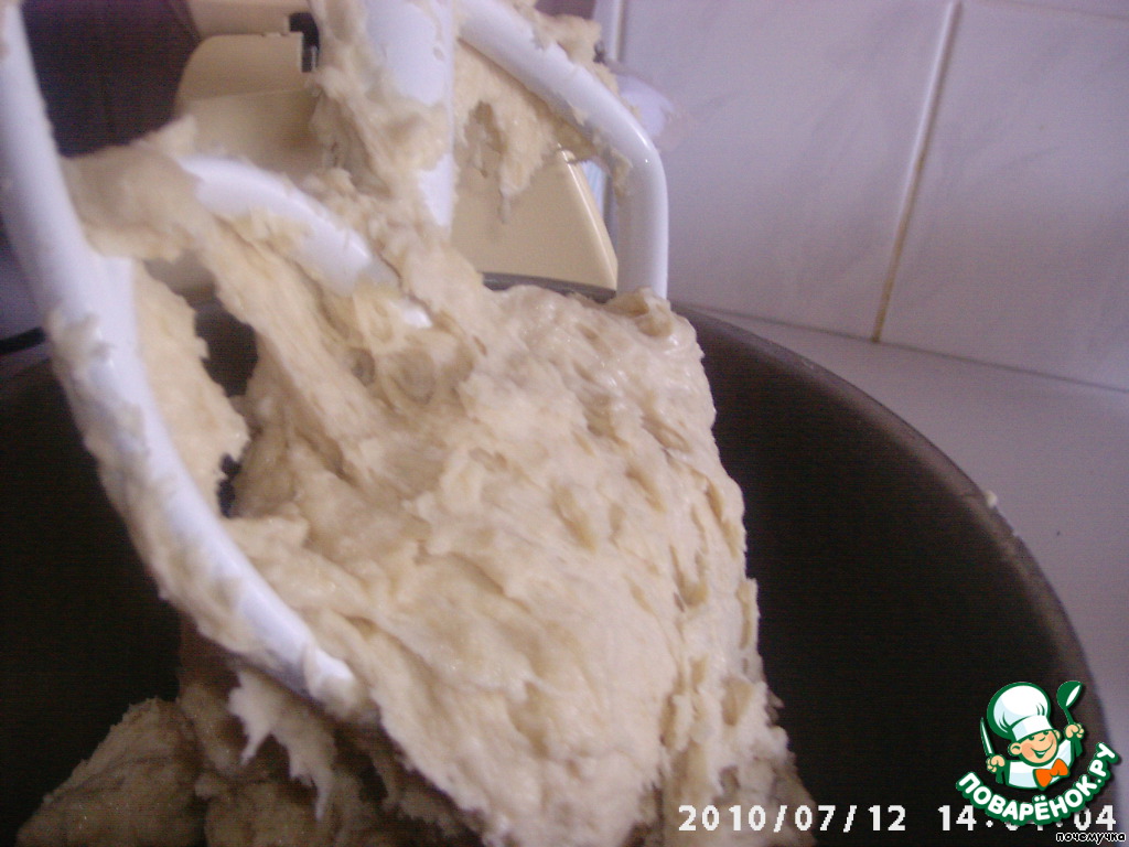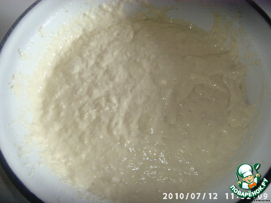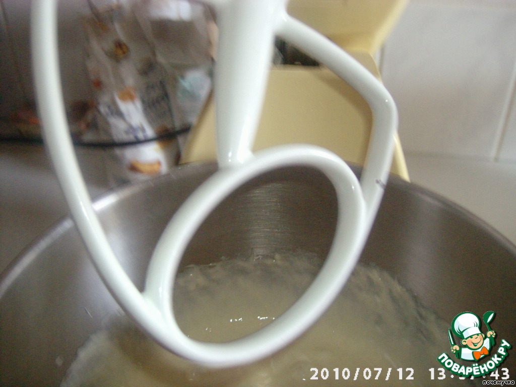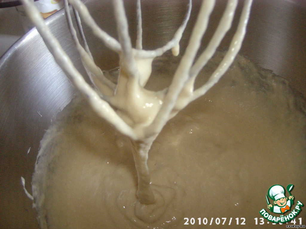 Теперь берем миксер с насадкой "венчик", взбиваем пару минут нашу готовую опару. Она станет воздушная.
