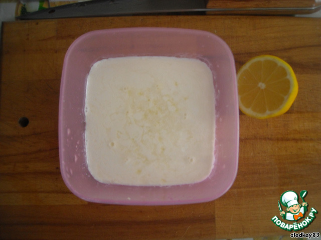 Смешать в миске лимонный сок и сливки. (При этом сливки станут густотой как кефир)