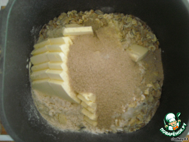Затем замесить тесто из молока, сливок с лимонным соком, яйца, муки, хлопьев, сливочного масла, сахара, соли и дрожжей.