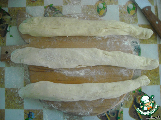 Раскатать из каждой части полоски, стараясь сильно не мять тесто.