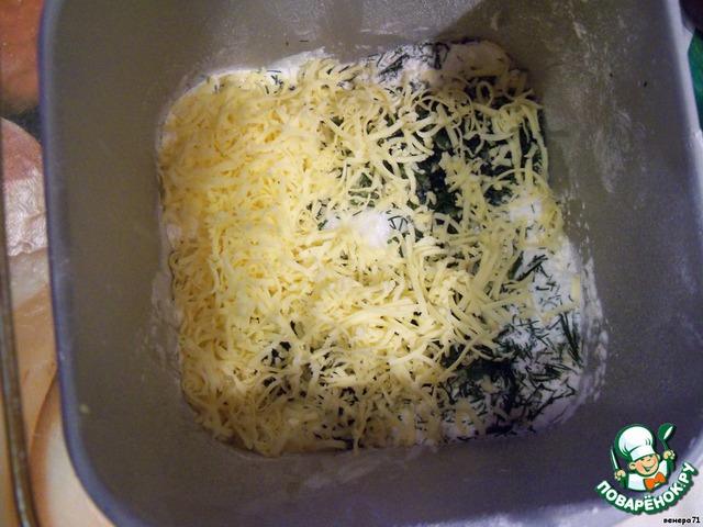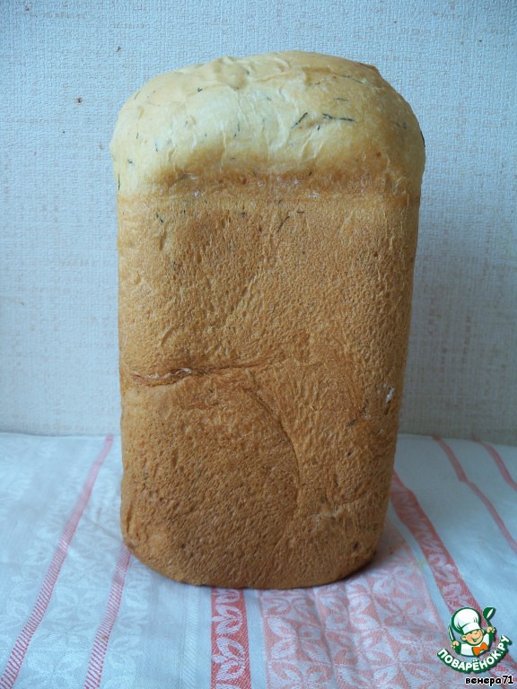 Сложить все ингредиенты согласно инструкции(укроп и сыр в последнюю очередь). Ставим режим основной хлеб, у меня 4ч.10мин., корочка по желанию.