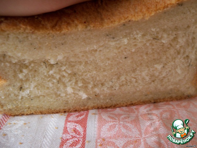 | Уважаемые обладатели хлебопечек, хочу предложить вам мой любимый хлебушек. Он получается большой 1 кг. 100 гр. с ярко выраженным сырным вкусом, а если его еще поджарить в тостере и натереть чесночком.... получается мняка, вкусно особенно с борщиком..... |