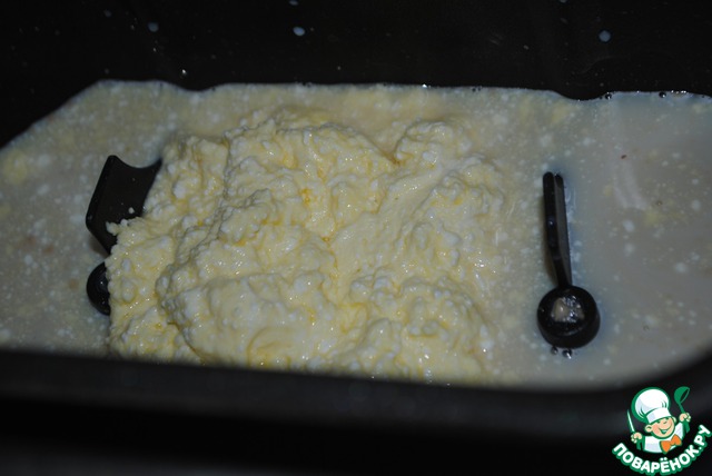 В теплое молоко добавляем дрожжи, ждем 5-10 мин. пока они растворятся. Затем загружаем в ХП все ингридиенты, в соответствии с инструкцией к ней. У меня сначала жидкости.