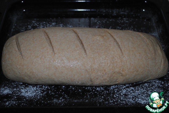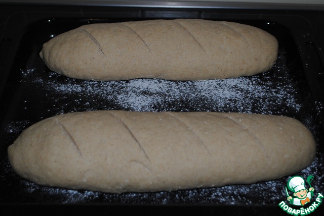 После того, ка батон значительно увеличится в размере, делаем насечки и отправляем в разогретую на 180* духовку 30-40 мин.