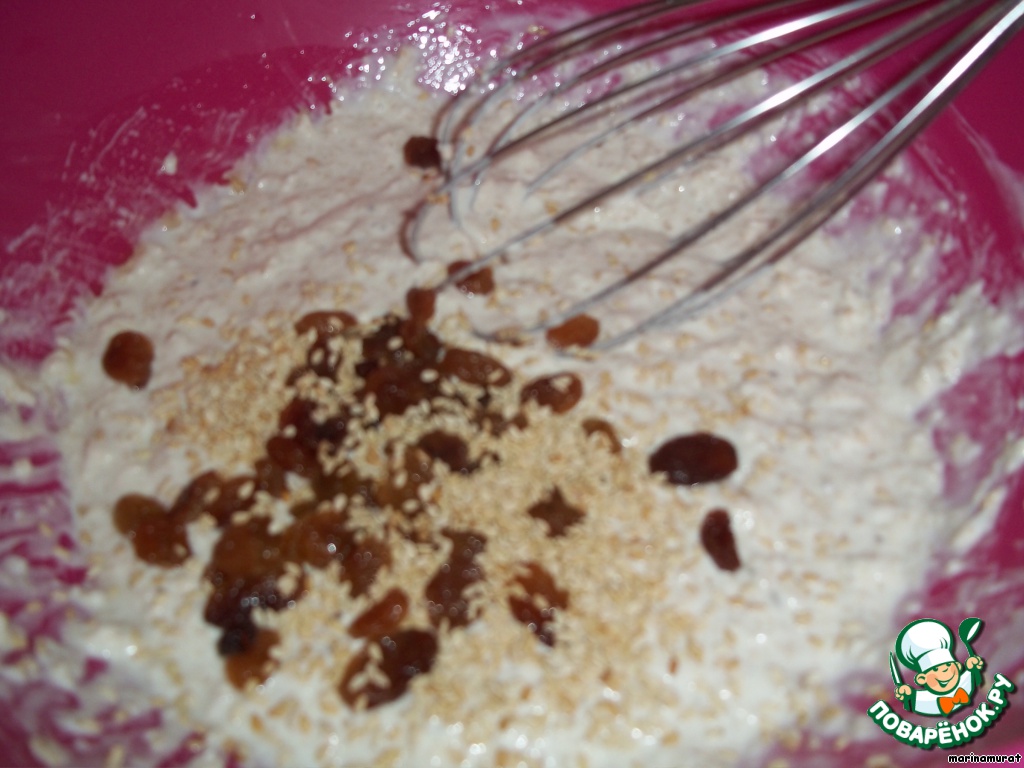 Добавили изюм, семечки, орехи, кунжут, снова перемешали.