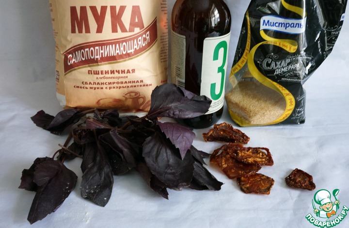 Я разделила тесто на две части, в одну добавила несколько ломтиков нарезанных вяленых помидоров, вторую оставила просто с базиликом. Верх слегка смазала растительным маслом.