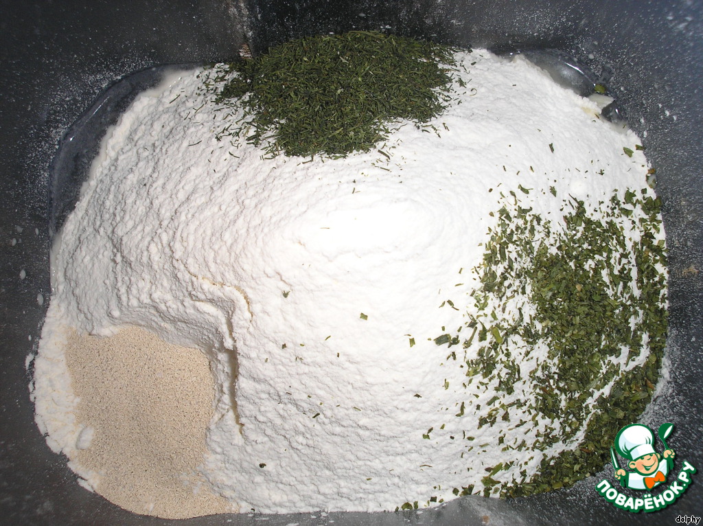 ... просеянная мука, лук, семена укропа (я не использовала, т.к. не люблю), укроп и дрожжи.